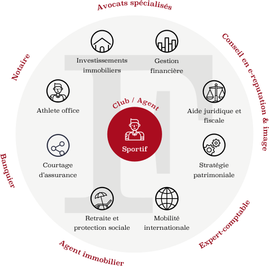 Après un audit complet, Financiale Sport gère les intérêts financiers des athlètes et prépare leur avenir en s’appuyant sur ses partenaires en droit à l’image, en droit du sport, en droit fiscal et autres experts juridiques ou de conciergerie.